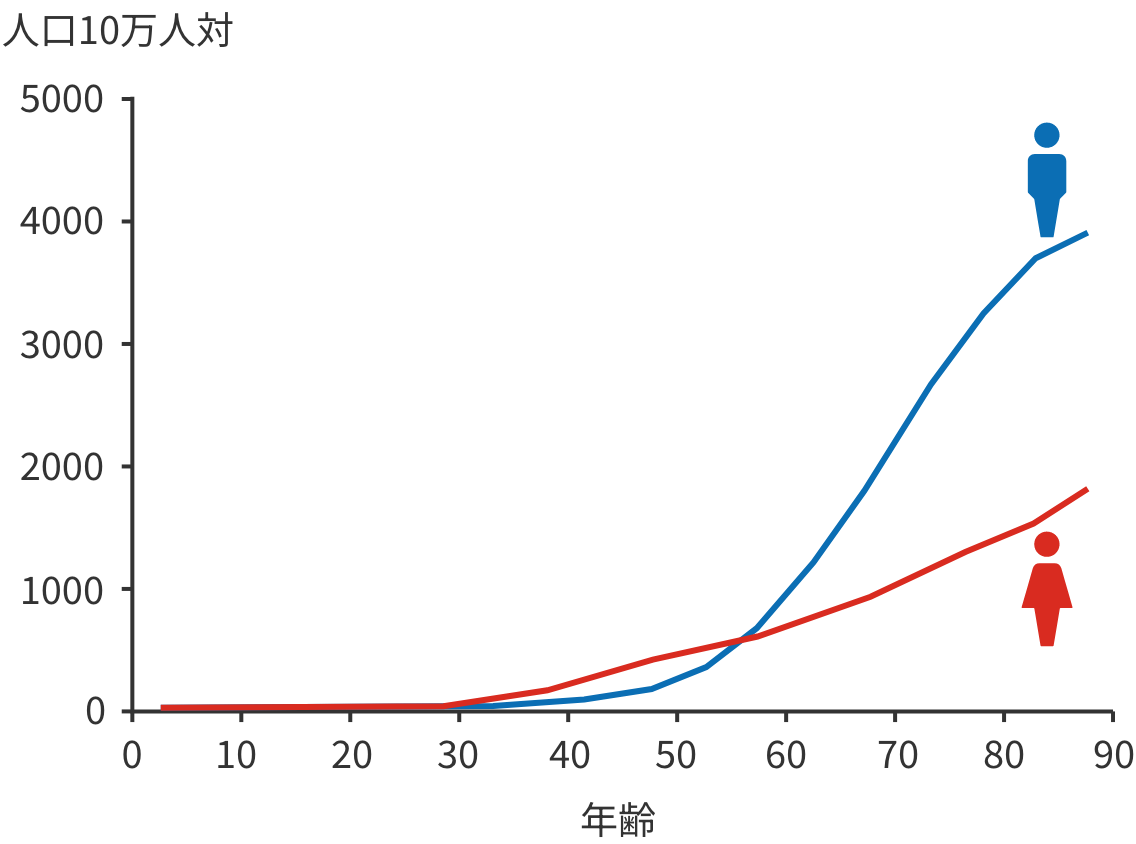 また、大腸がんによる死亡率も年齢とともに高くなる傾向があります。